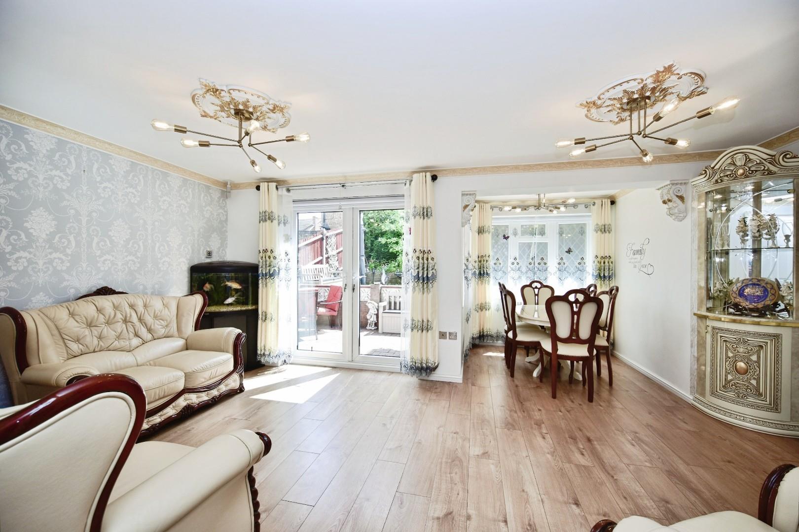 The property’s benefits include: a modern fitted kitchen with integrated and built in appliances, extended lounge/diner, three double bedrooms, modern bathroom with white suite, rear garden with side access, driveway and garage with utility area.