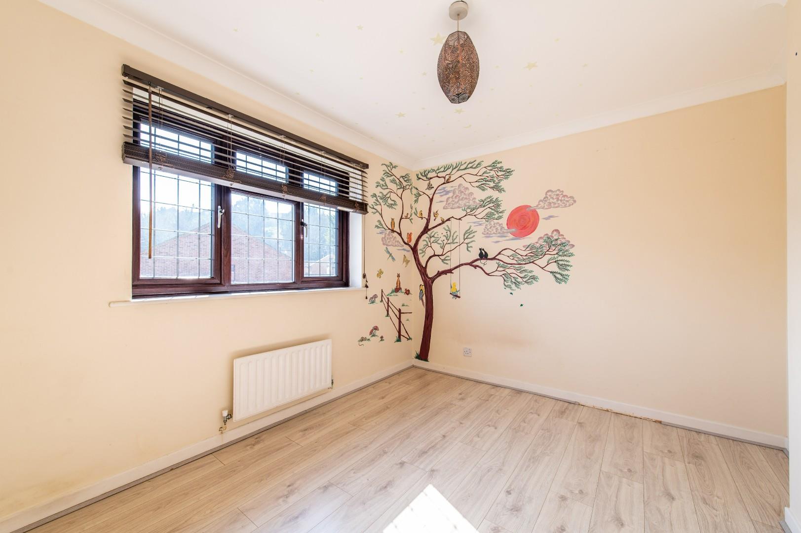 To the rear is a 30′ garden with fruit trees and a decking area plus a garden shed. There is a driveway for two cars to the front.